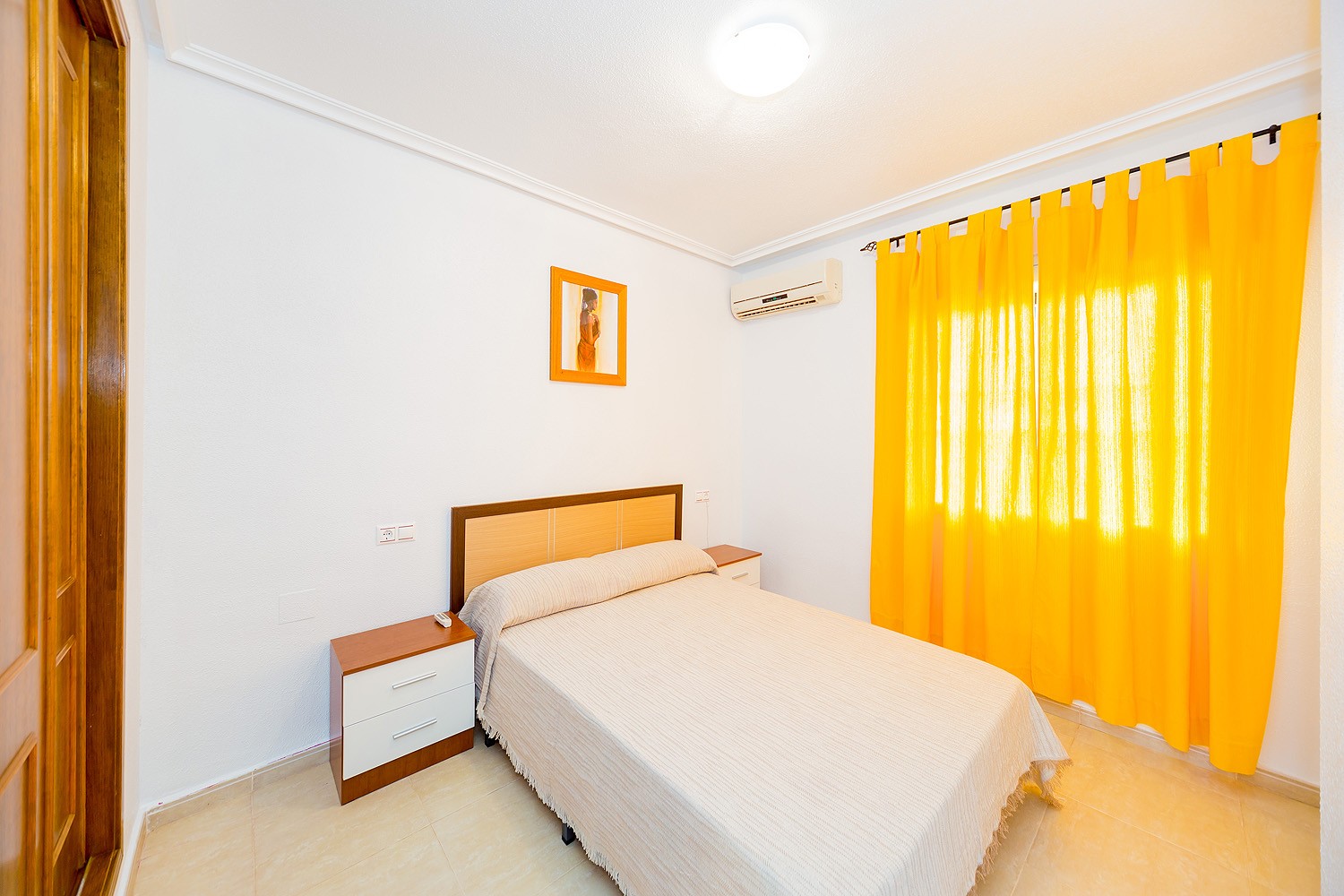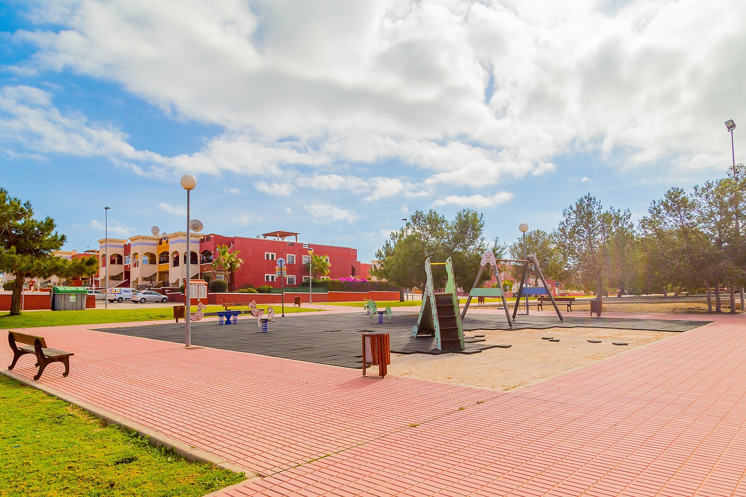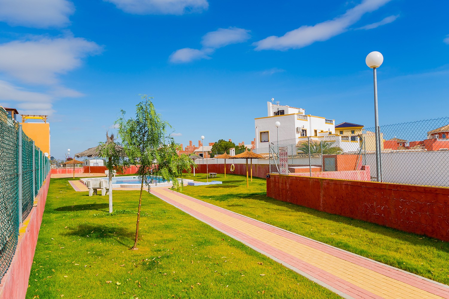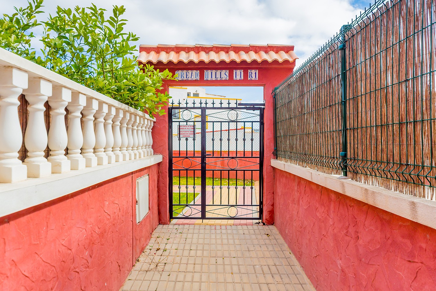 This bungalow is located in the urbanization of "Dream Hills", in the popular Los Altos, Orihuela Costa. It is set out over 75 m2 and consists of two bedrooms, living room, two bathrooms (one with bath, the second with shower), independent kitchen, from which you have access to a large patio. In front of the bungalow there is a large garden area. It is equipped with furniture, appliances, dishes, bed linen and towels. Spanish Television is also available. Both bedrooms have air conditioning, in the salon there is a ceiling fan. Both bedrooms have fitted wardrobes. There is a communal swimming pool and green area. Nearby there is also a children’s playground. It can sleep up to 6 people. No pets are allowed and smoking is only allowed outside the house. The area is very popular and the new ALDI supermarket is about 750 meters away. The blue flag beach of Playa Flamenca, La Zenia and Campoamor are all a short drive away. There are many bars and restaurants in walking distance and the Zenia Boulevard shopping complex with its array of shops bars and much more is a 5 min drive away.
