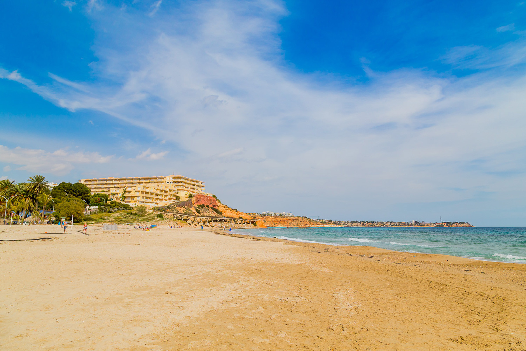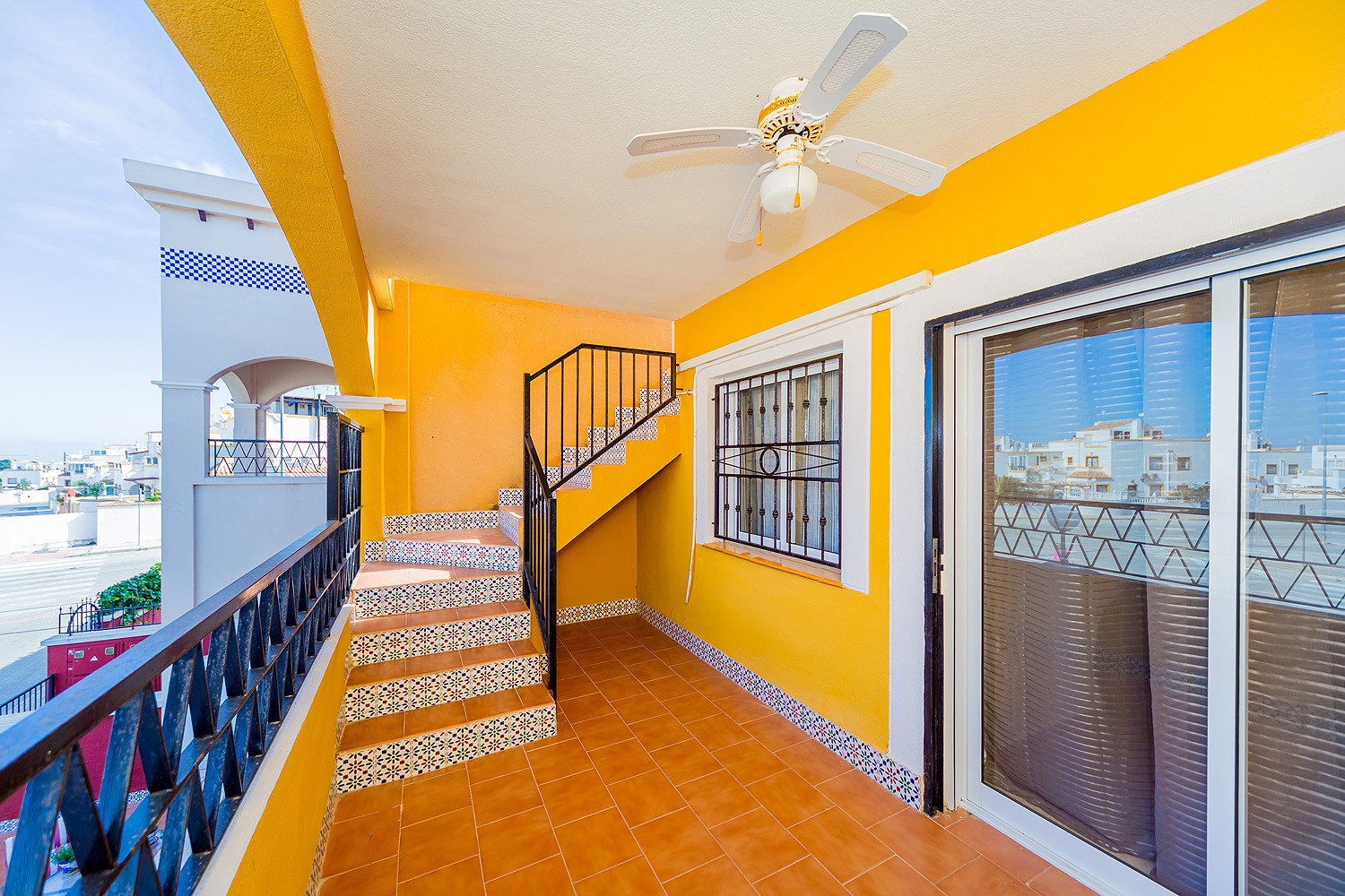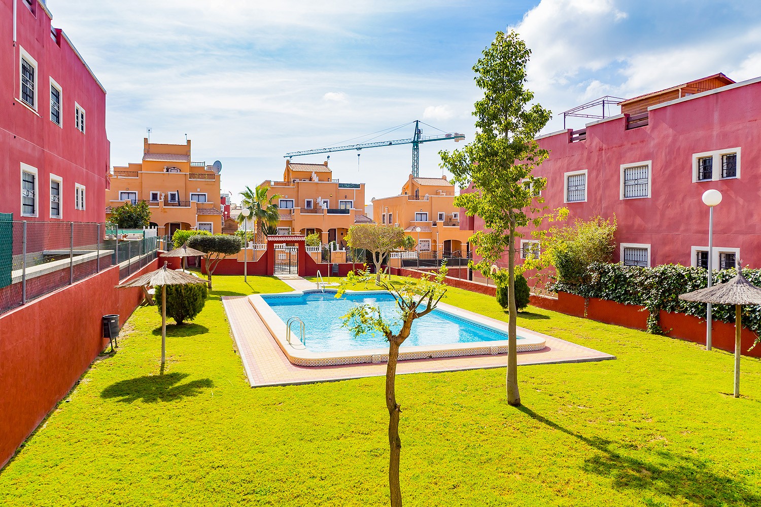 This bungalow is located in the urbanization "Dream Hills” in the Los Altos on the Orihuela Costa. It sleeps up to 6 people and is set out over 75 m2. It consists of two bedrooms, living room, two bathrooms (one with bath and the other with a shower), There is an independent kitchen and terrace. There is also access to the private roof solarium, which. It is equipped with furniture, appliances, dishes, bed linen and towels. Spanish Television is also available. There is air conditioning and ceiling fans. Both bedrooms have fitted wardrobes. The urbanization has a communal swimming pool and a lovely green area. No pets allowed and smoking is only allowed outside the house. The area is very popular and the new ALDI supermarket is about 750 meters away. The blue flag beach of Playa Flamenca, La Zenia and Campoamor are all a short drive away. There are many bars and restaurants in walking distance and the Zenia Boulevard shopping complex with its array of shops bars and much more is a 5 min drive away.