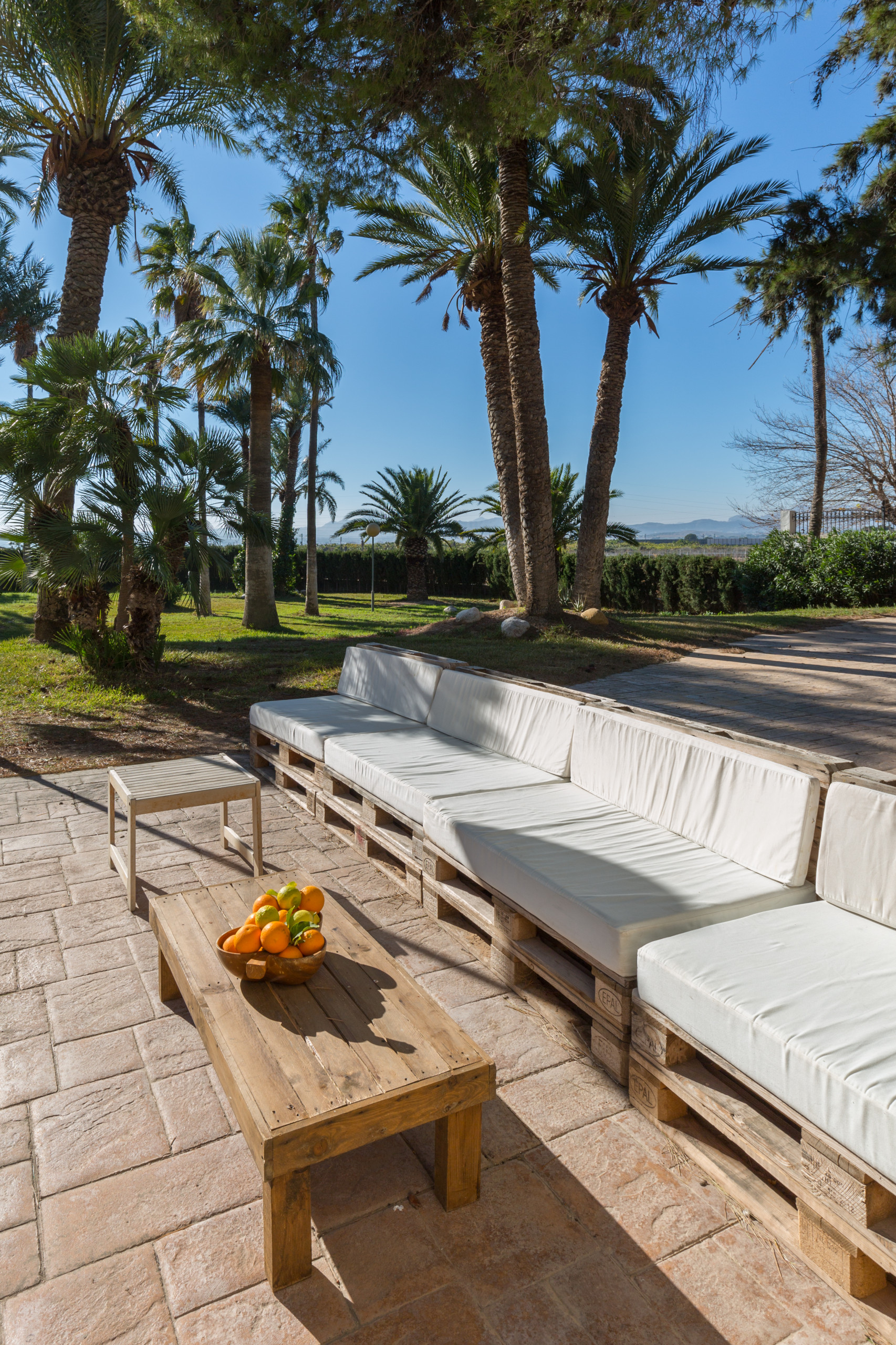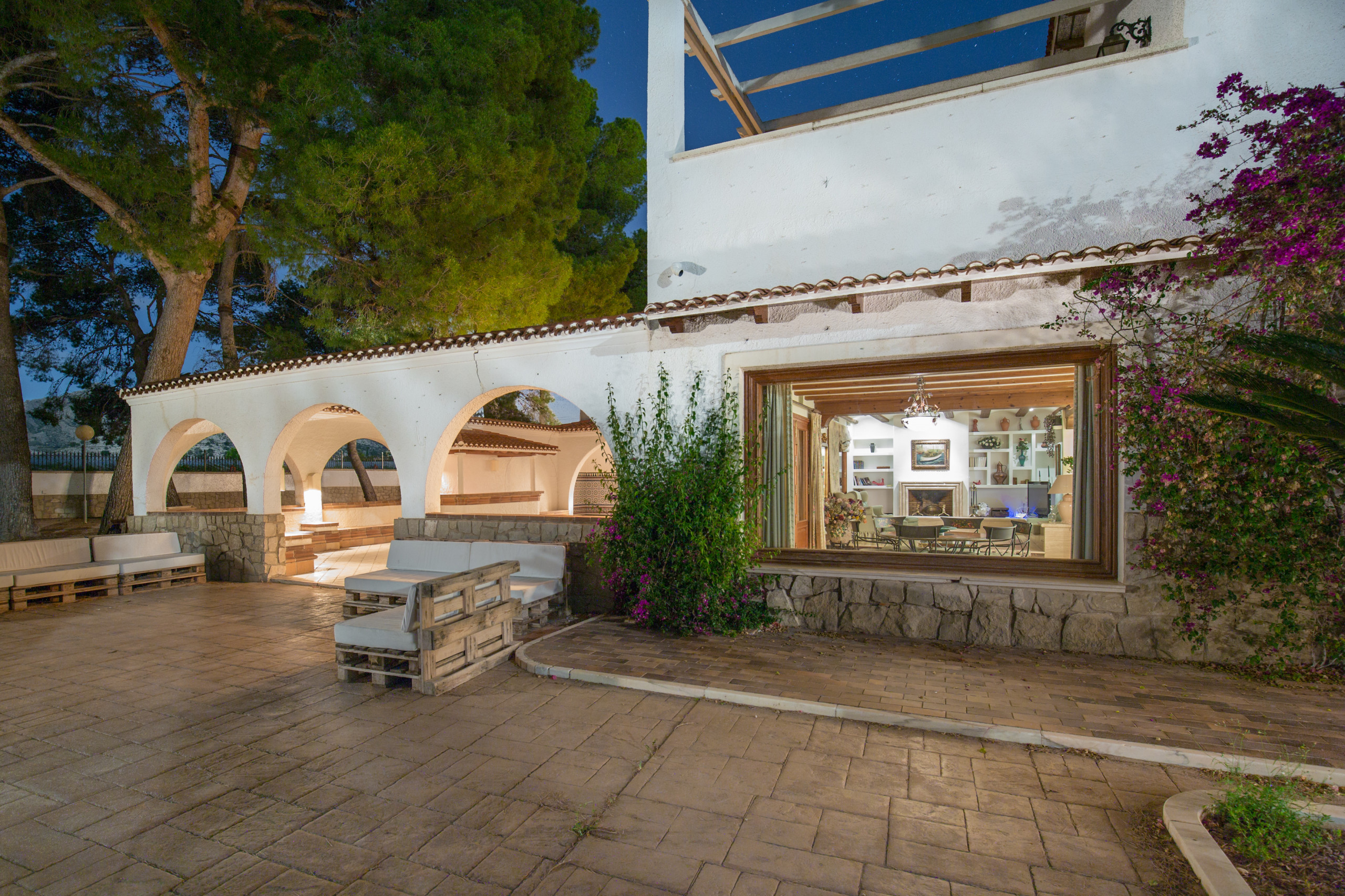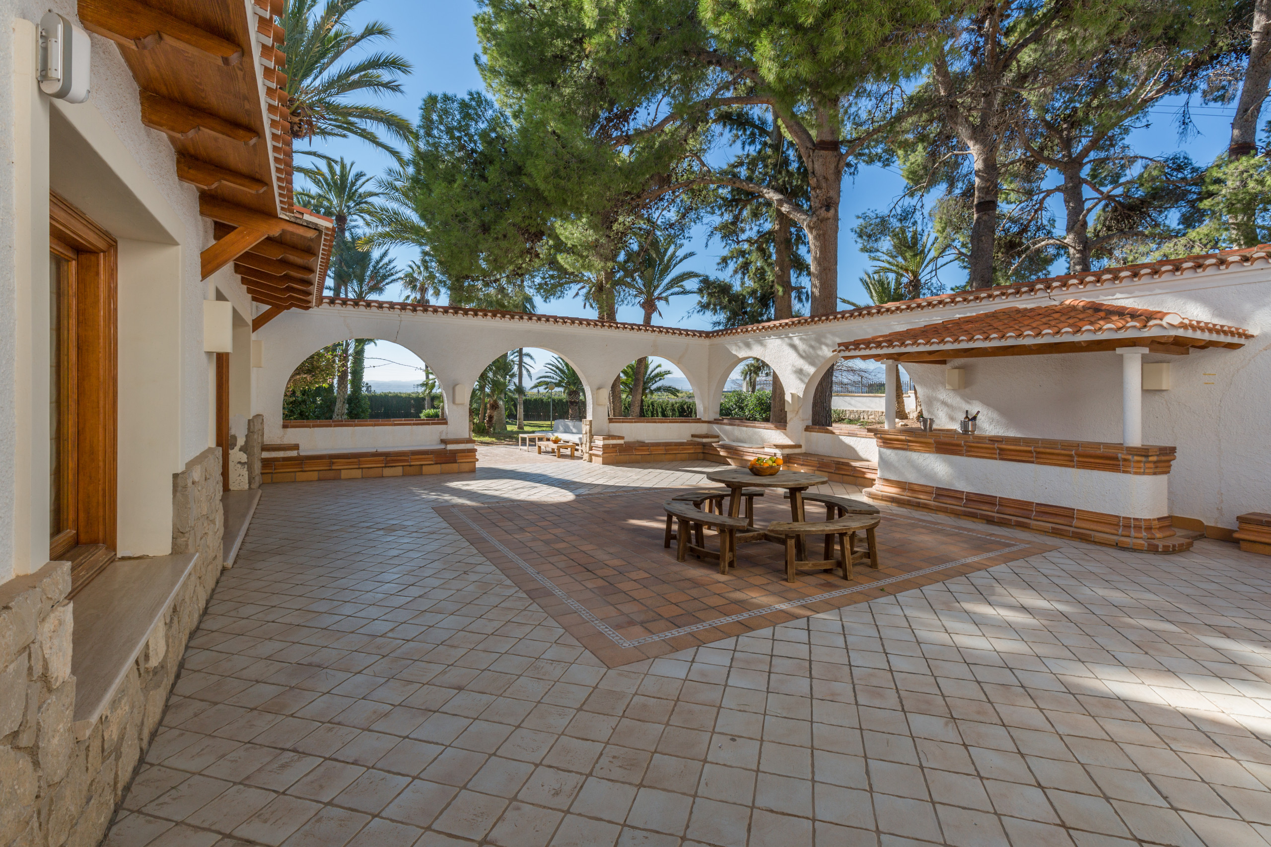 Large and strong palm trees of all kinds, fruit trees , bonsais, flower tendrils, cacti, well-kept pines and flower dreams in all colors allow you to forget the outside world. In its luxurious paradise garden, it has its own stable for horse lovers, a pool in the romantic pine forest with picnic area and bathrooms . A private picnic area , service dwelling, well, and a 25-meter pool complete the original experience under the coniferous trees. Everything is well equipped with hiking trails. And the fantastic experience goes even further. Palm trees, a 2 reservoirs and fountains, a pond, that frames the property with magnificent specimens that make this garden an experience.