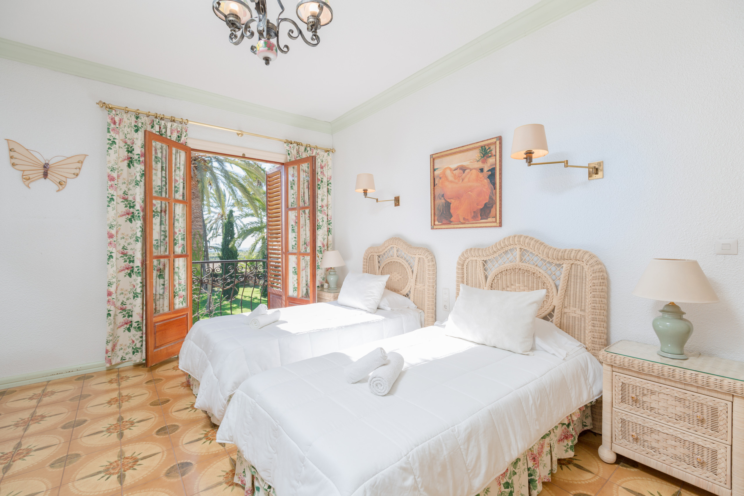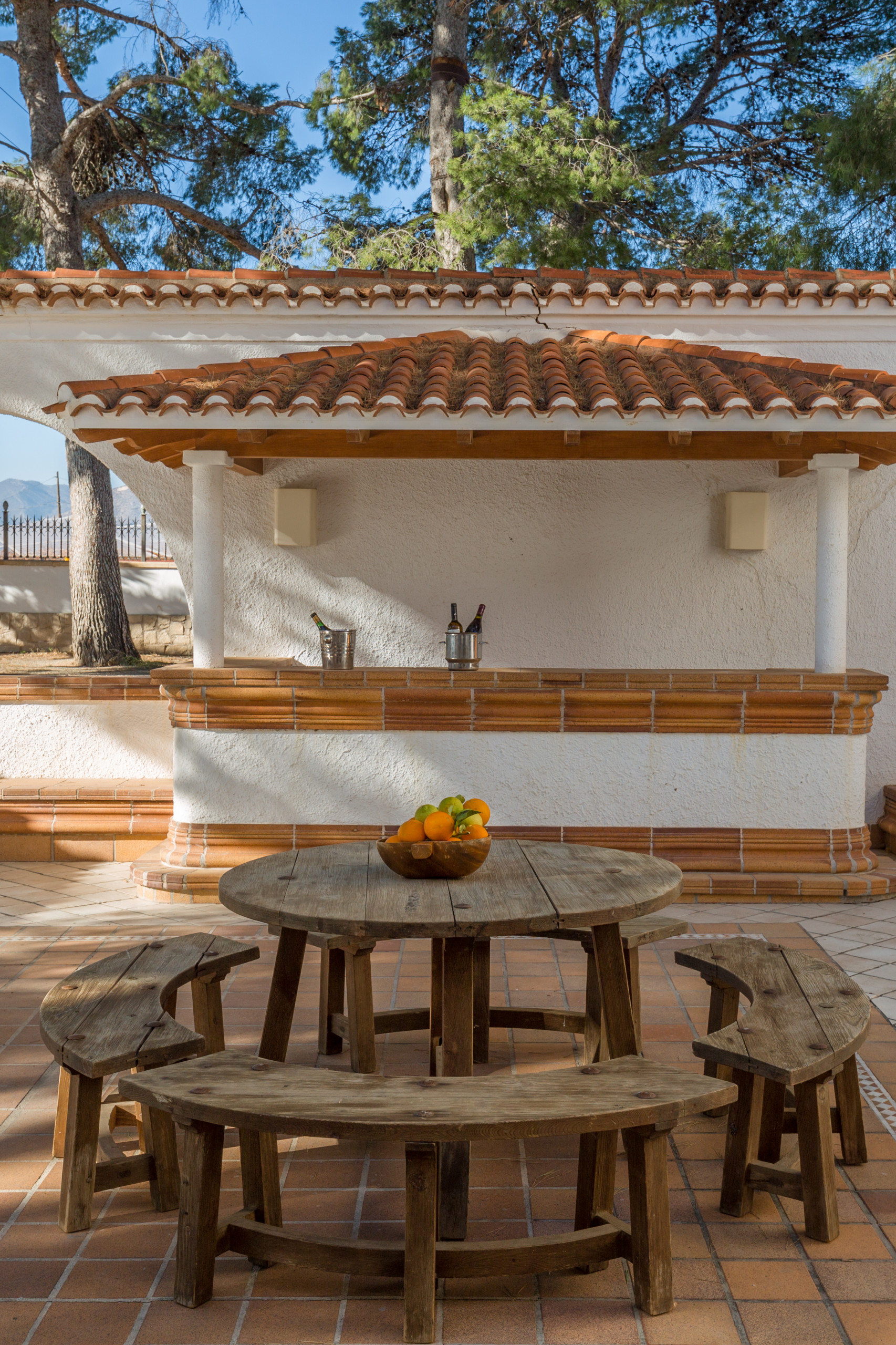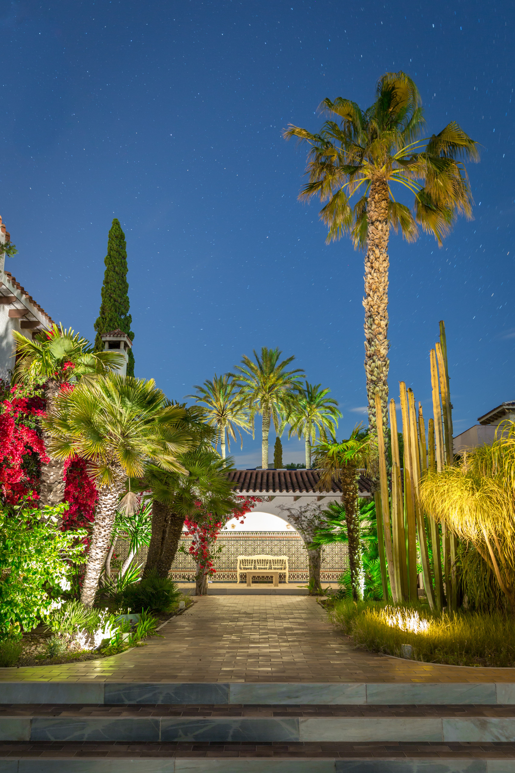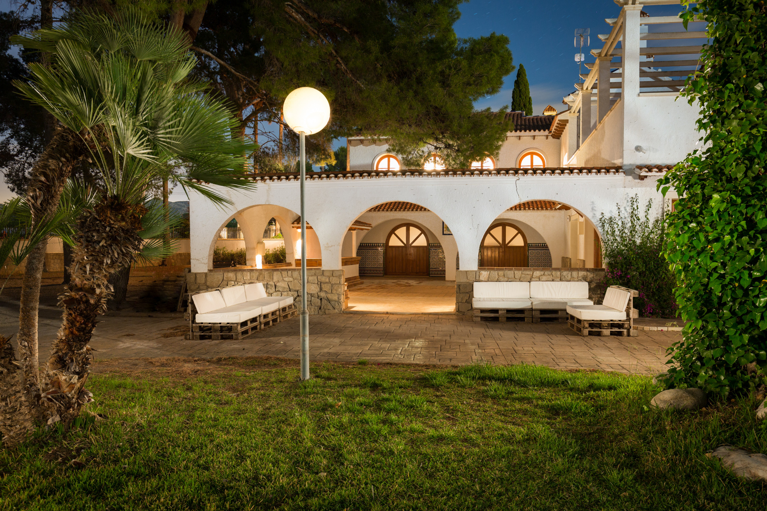 Large and strong palm trees of all kinds, fruit trees , bonsais, flower tendrils, cacti, well-kept pines and flower dreams in all colors allow you to forget the outside world. In its luxurious paradise garden, it has its own stable for horse lovers, a pool in the romantic pine forest with picnic area and bathrooms . A private picnic area , service dwelling, well, and a 25-meter pool complete the original experience under the coniferous trees. Everything is well equipped with hiking trails. And the fantastic experience goes even further. Palm trees, a 2 reservoirs and fountains, a pond, that frames the property with magnificent specimens that make this garden an experience.