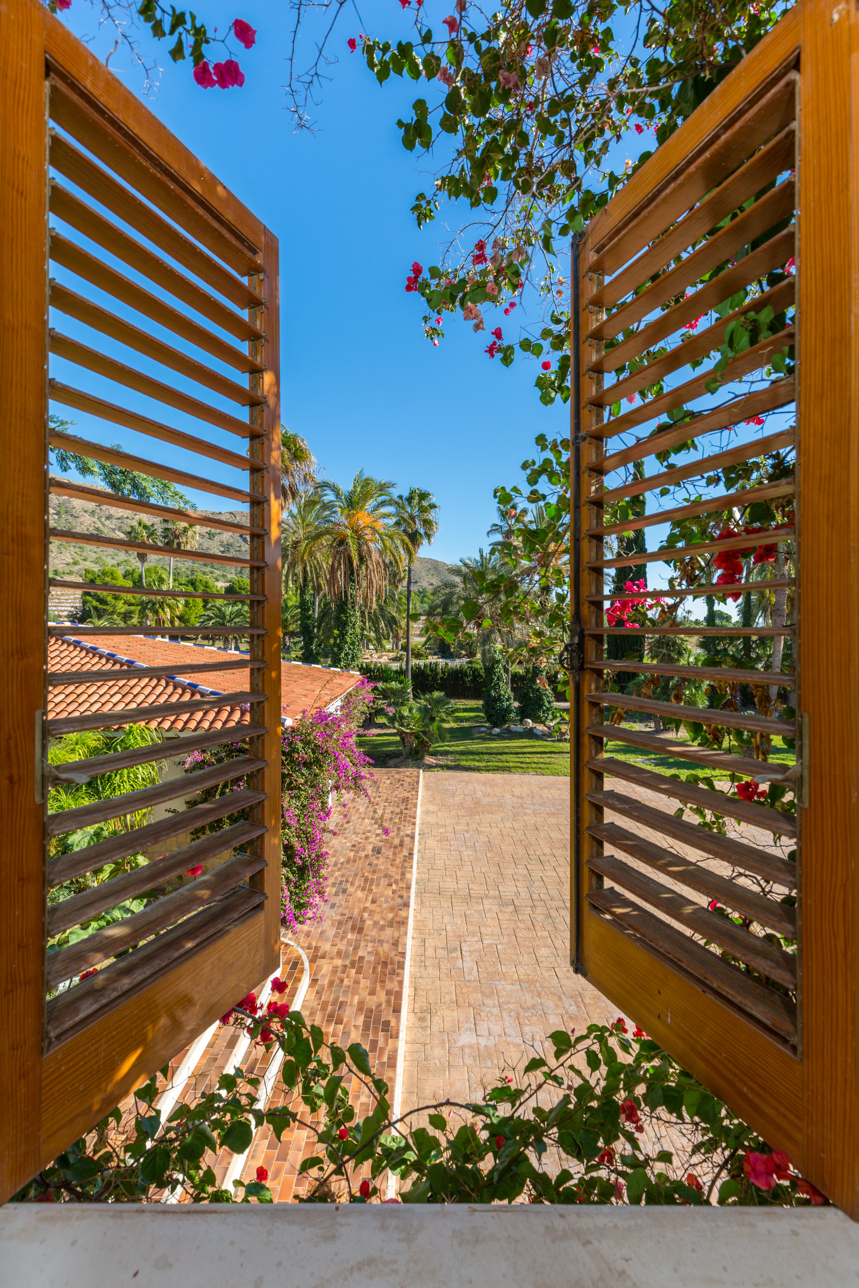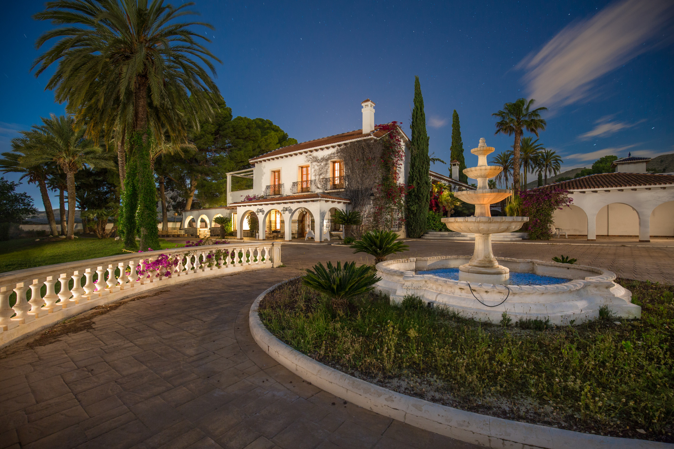 A beautiful private park gives this paradisiacal property on the Costa Blanca its unique charm. Here you can perfectly represent and realize your personal dream of Mediterranean life. From here you have a beautiful panoramic view of the fantastic vineyards of Novelda in the best natural environment of Alicante and the mountains of the interior. The safe walls protect this indescribably beautiful and green universe from the outside. Your privacy and that of your guests are 100% protected. Luxury is the correct word to describe this property. A more beautiful natural or adventure park can hardly compete with this private estate, created to the smallest detail by renowned architects. On 40,000 square meters of land, you can enjoy pure nature and experience botanical diversity. Exotic and tropical plants enter into a perfect symphony of variety, color and form. Every flower, every leaf is planned here.