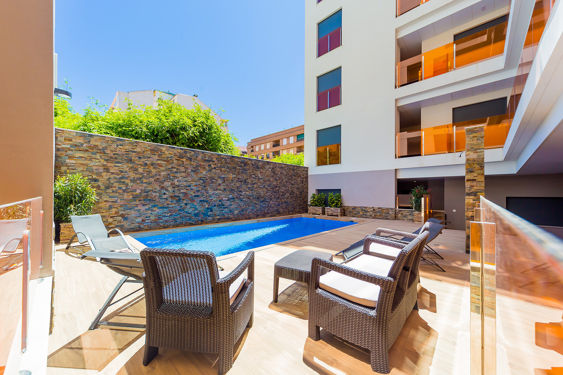 There is a central hot and cold air conditioner unit. Spanish television is also available. The complex benefits from a Finnish sauna and heated salt water pool. There are local amenities all in walking distance including traditional tapas bars, eateries, banks, chemist, shops, supermarket and much more.