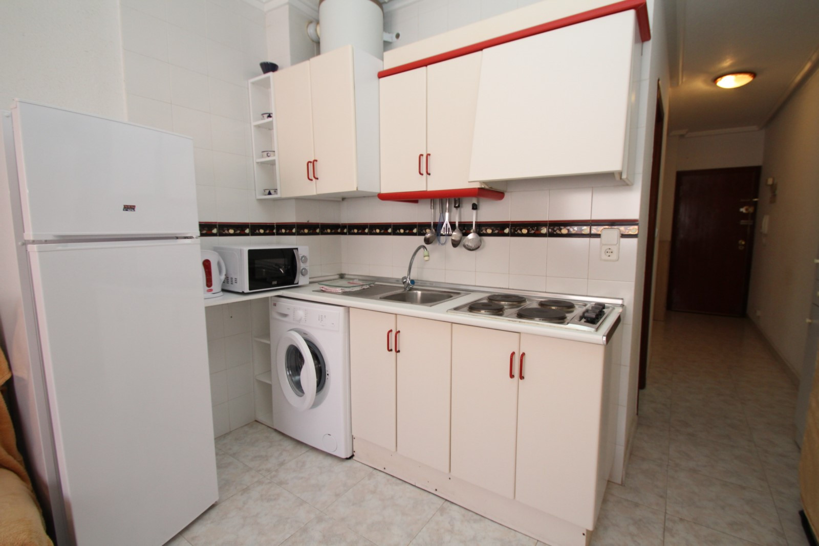 We offer for rent a studio for three people within walking distance of the blue flag beach of Del Cura. It is set out over 32 m2, it consists of a living room combined with an open plan kitchen, a bathroom and a private balcony. It is complete with furniture, appliances, crockery, bedding and towels. There is also a hot and cold air conditioning unit installed. Spanish television is also available. It is close to all local amenities including restaurants, tapas bars, supermarket and much more. The bus station is 10-15 minutes away on foot. Del Cura beach is a 4-5 minute walk away! Smoking in the apartment is strictly prohibited.