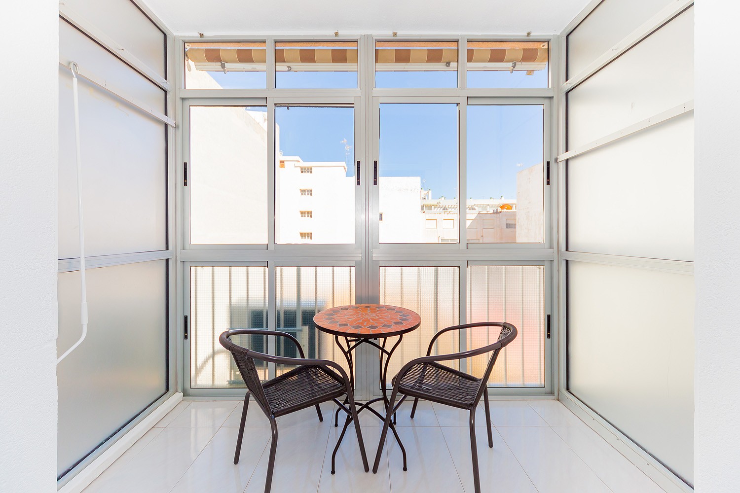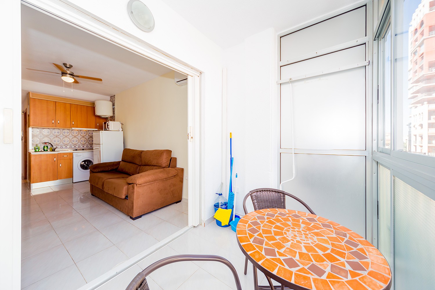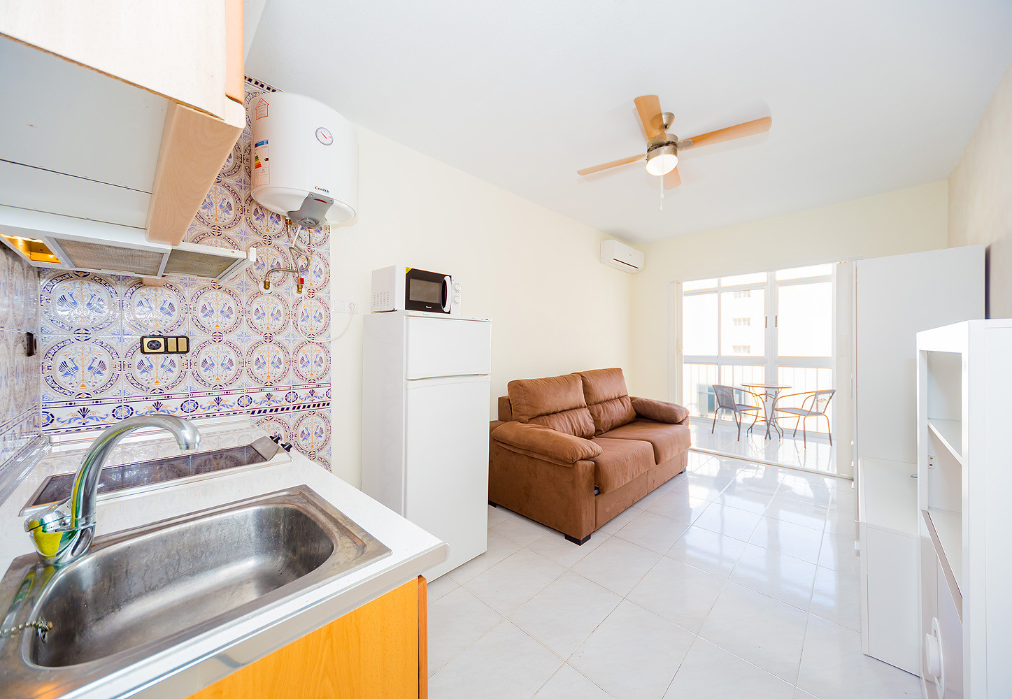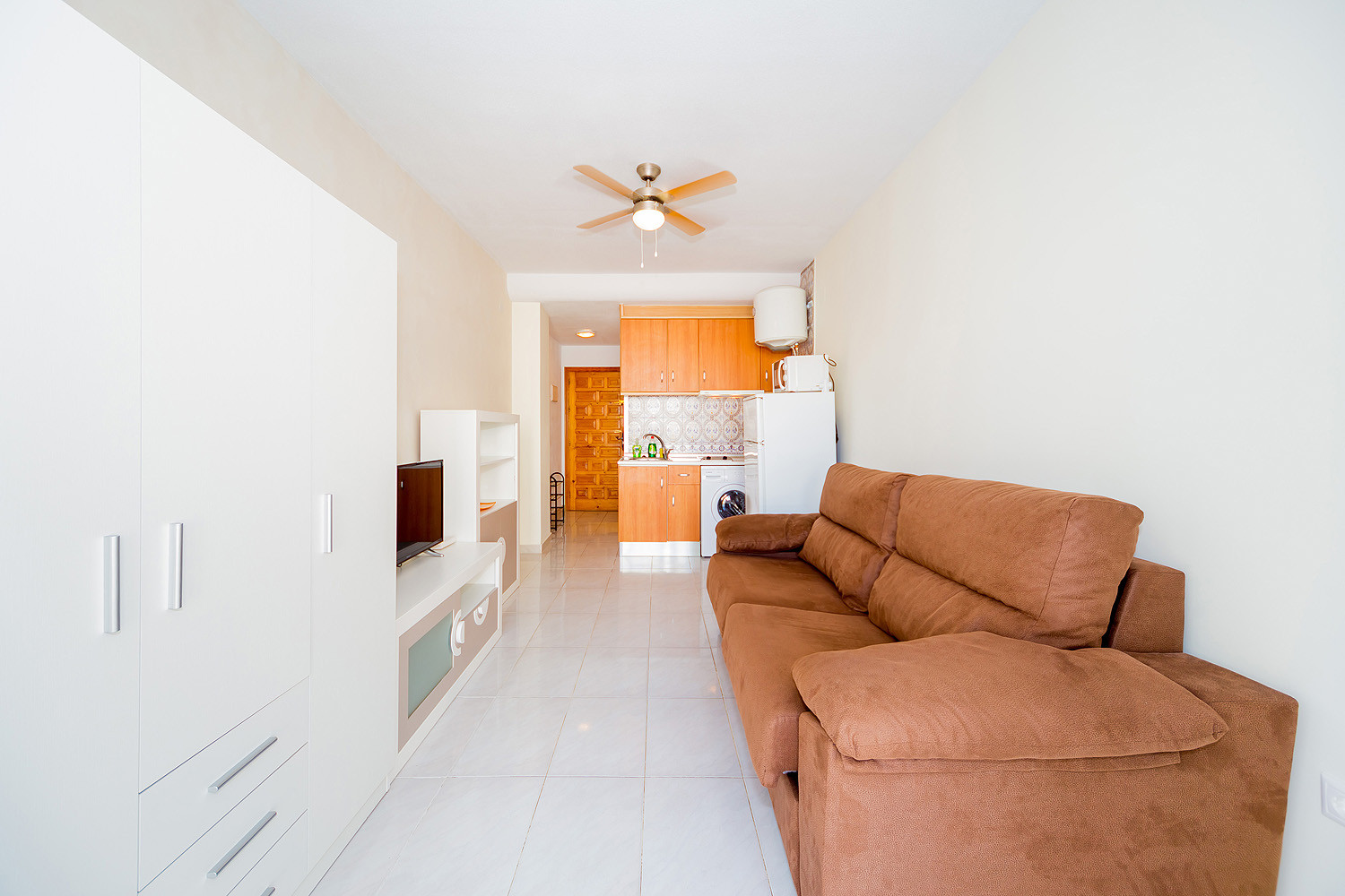 Renovated studio within walking distance from the sea and the beach. It is set out over 28 m2 and consists of a living room combined with a kitchen, a bathroom and a glazed in balcony. It is equipped with furniture, household electrical appliances, dishes, bed linen and towels. Installed air conditioning. Spanish TV is available. There is a beautiful courtyard with the benefit off lovely plants and flowers. The studio sleeps up to 3 people. There is an opportunity to rent a baby cot. No pets are allowed and smoking in the studio is prohibited. It is located less than 200 meters from the sea and the popular beach of Los Locos. There are array of bars and restaurants in this very popular area and the supermarket is 700 meters. In the neighbouring streets there are small grocery stores and traditional Spanish fruit and vegetable shops.