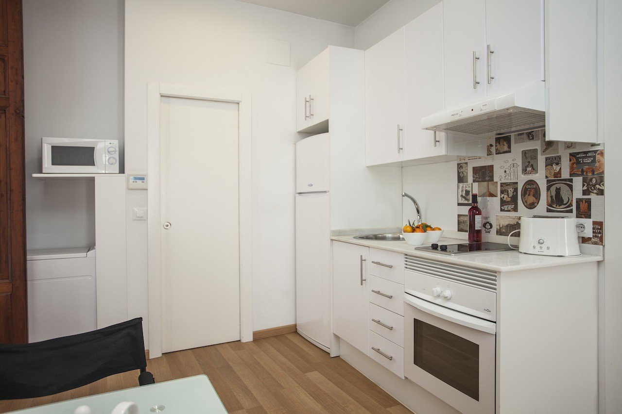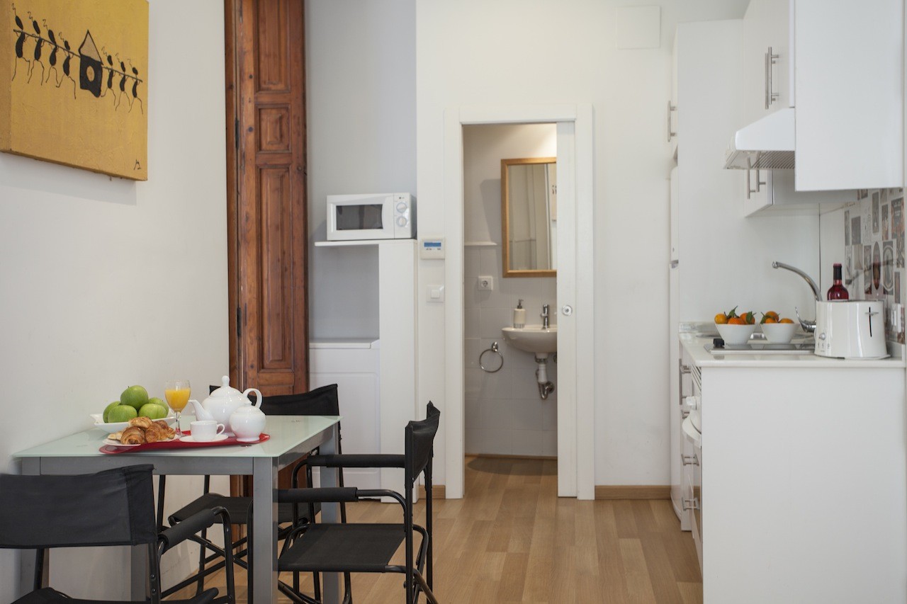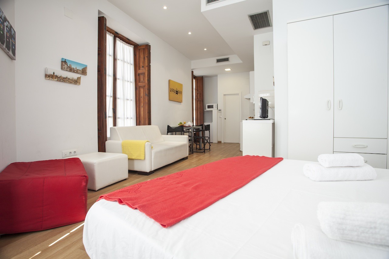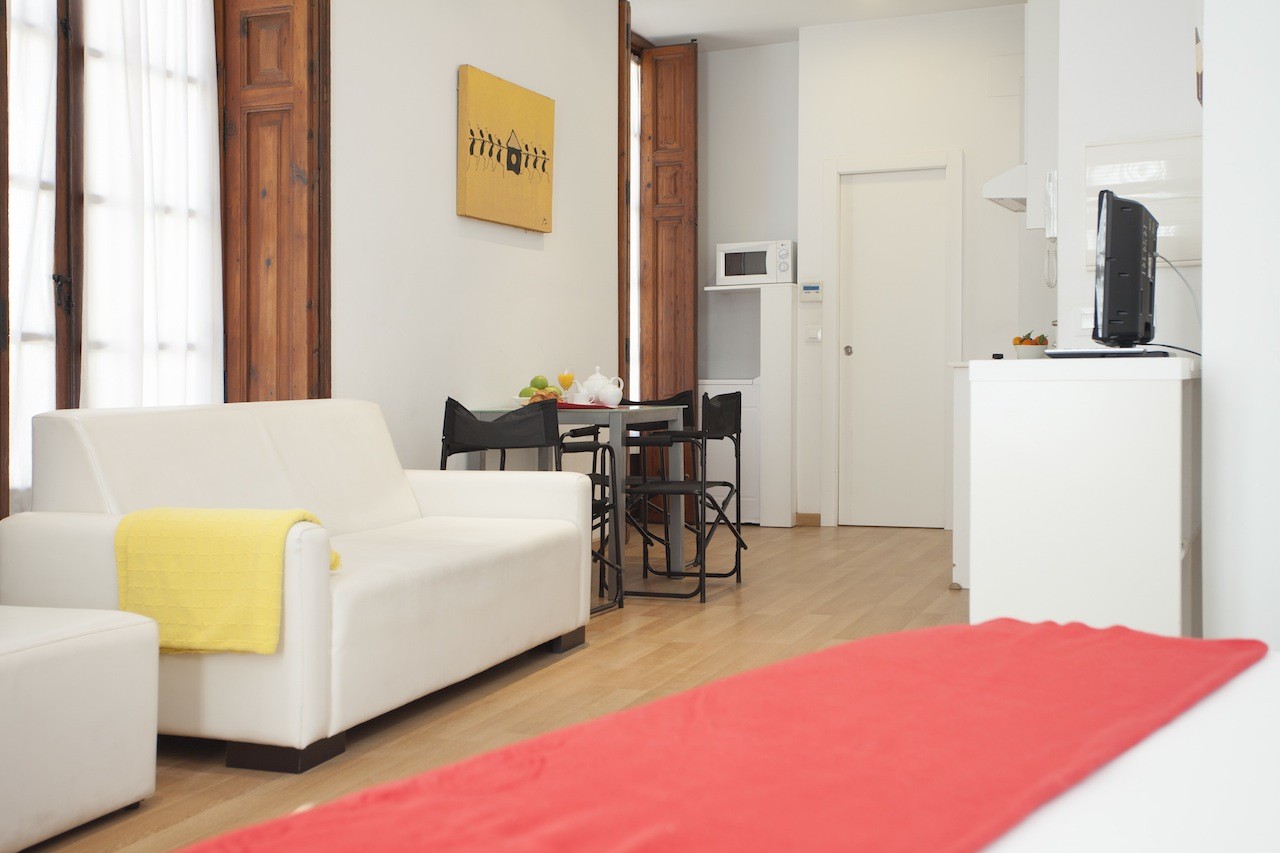 Modern studio with a excellent communal terrace which you can enjoy all year thanks to the great climate of this city. With capacity for 3 people, fully equipped and with large wooden windows complementing its beautiful decoration.
