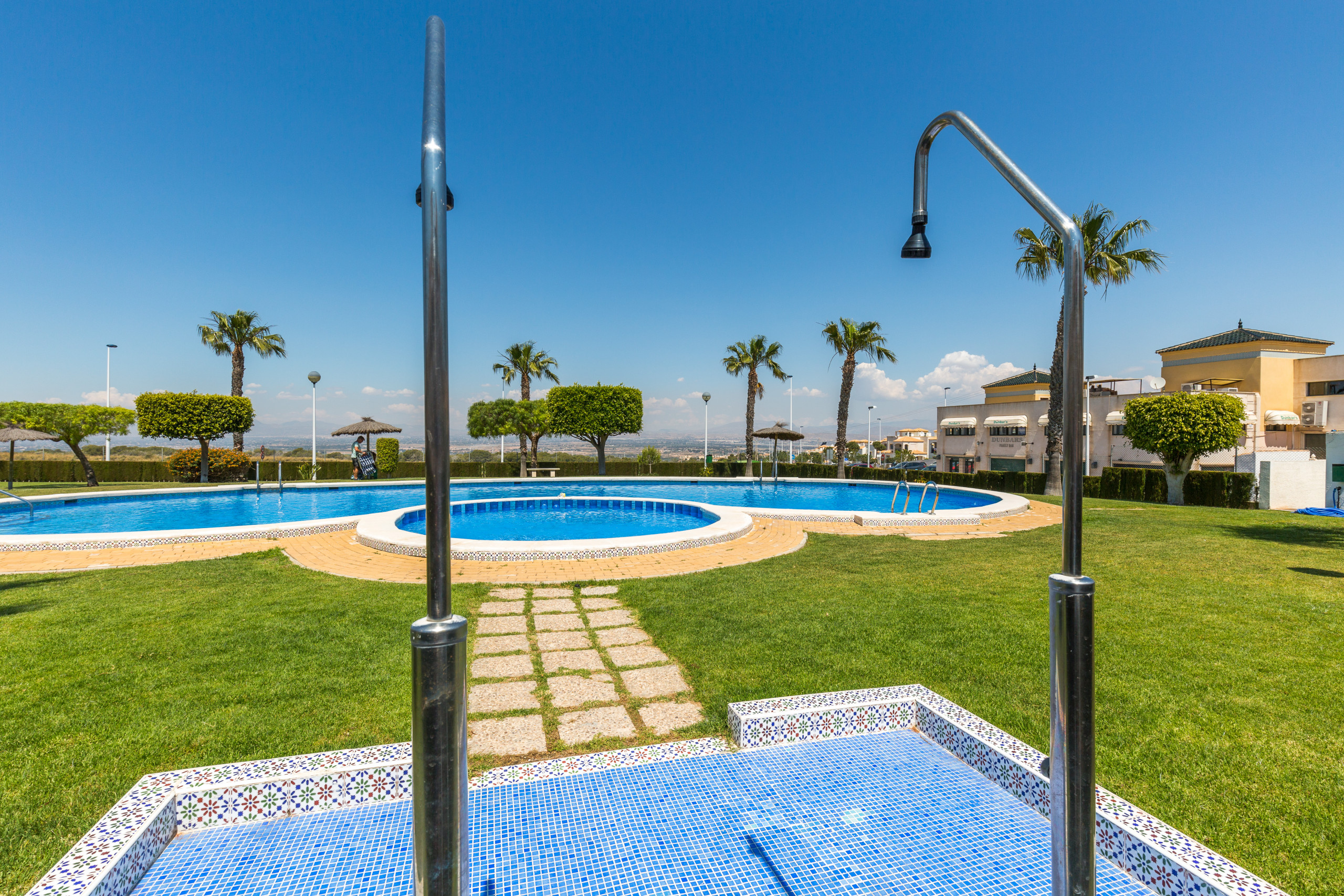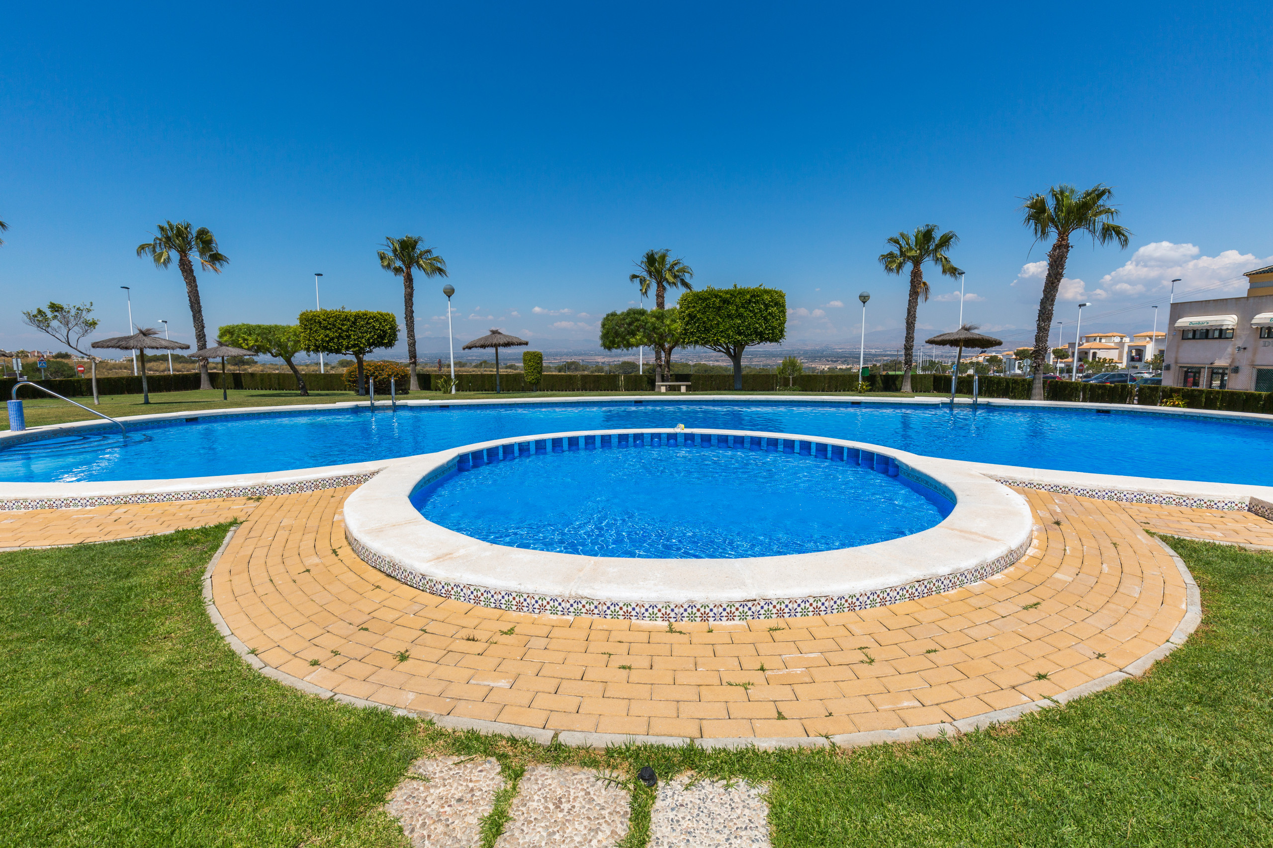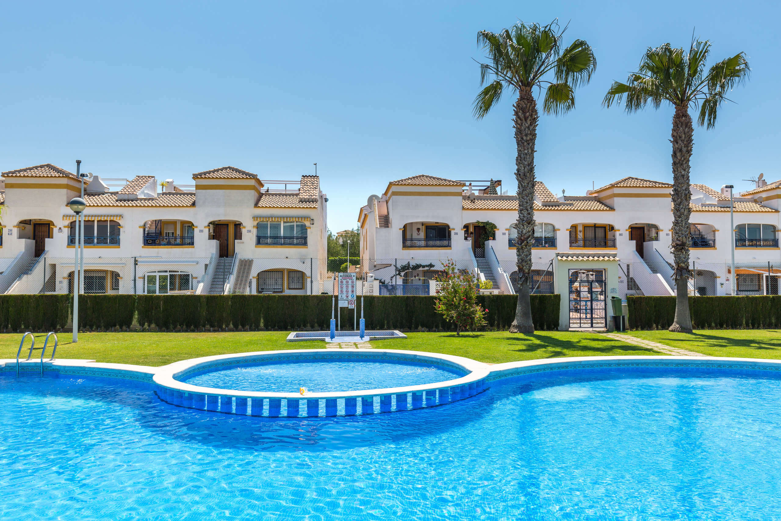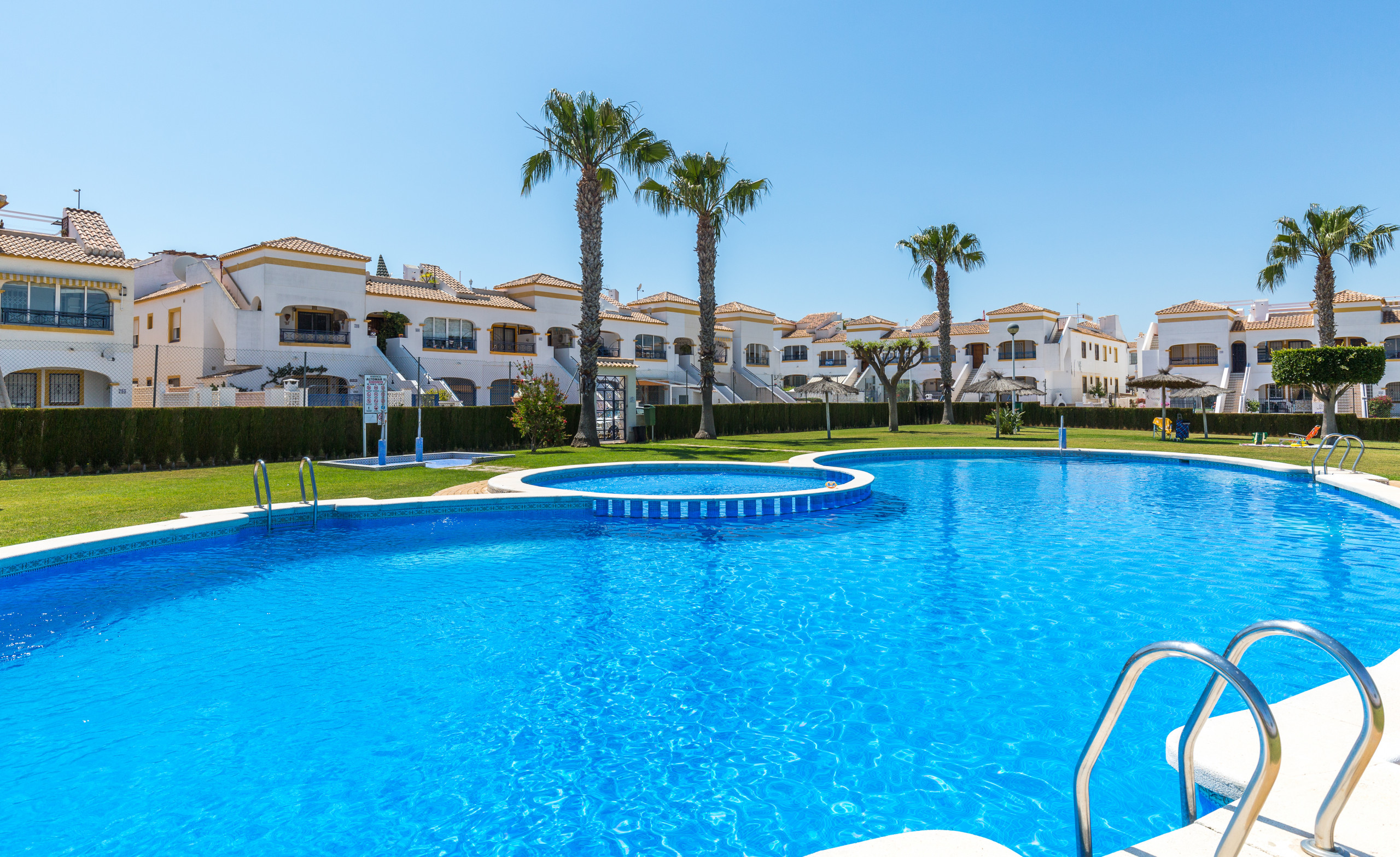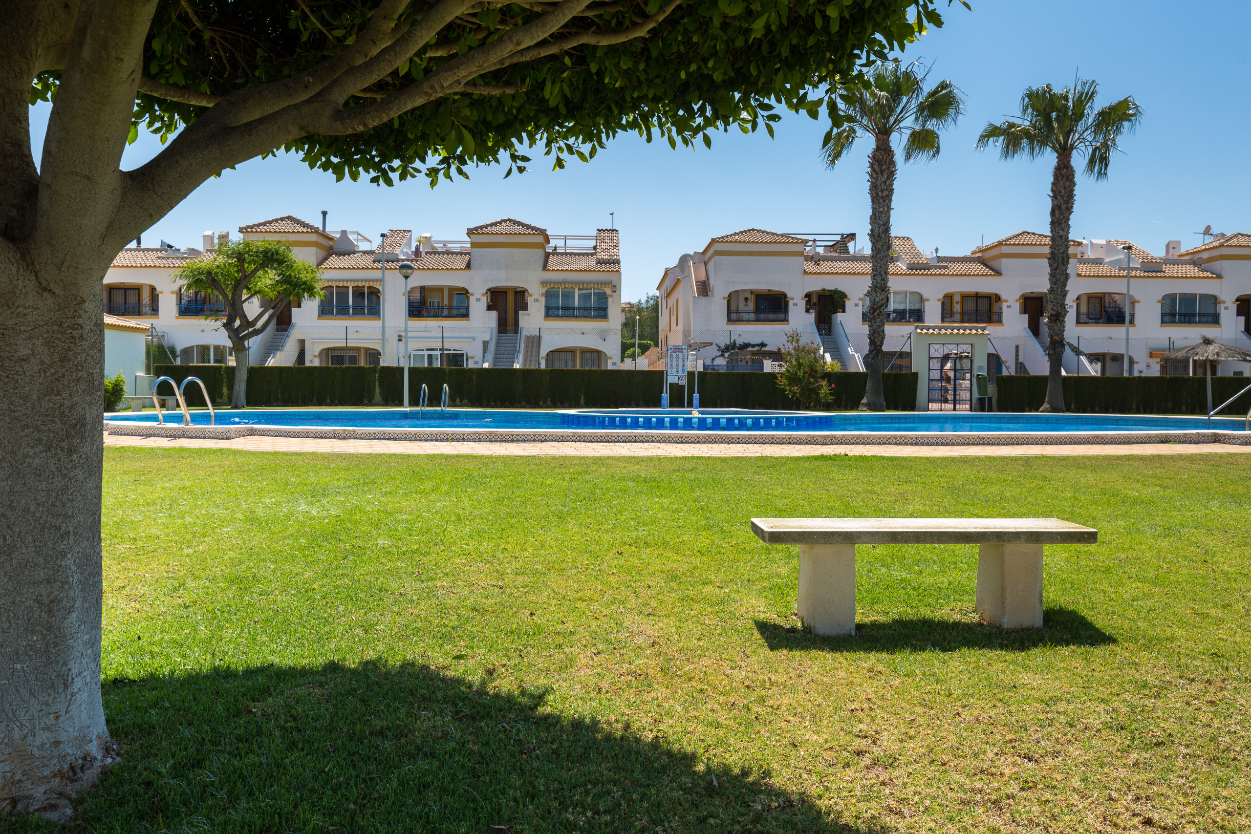 La comodidad de aparcar el coche delante de tu bungalow y con la piscina a unos metros