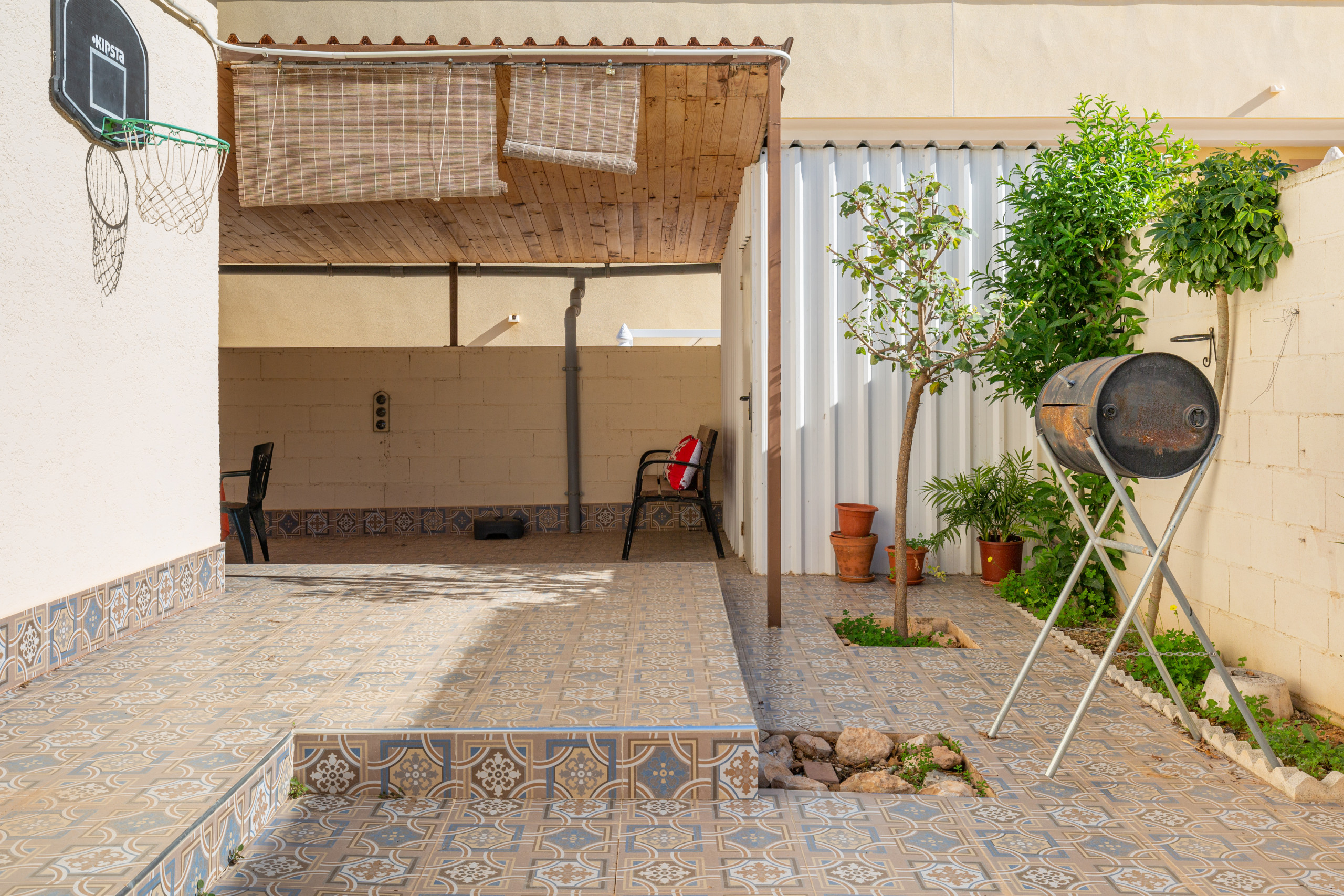 It has a fenced plot, 100 m2 of terrace, barbecue, air conditioning in the living room, mosquito nets, fans, DTT television and community pool. It also has an iron, hairdryer, WIFI internet access, children's area, tennis court and paddle court.
