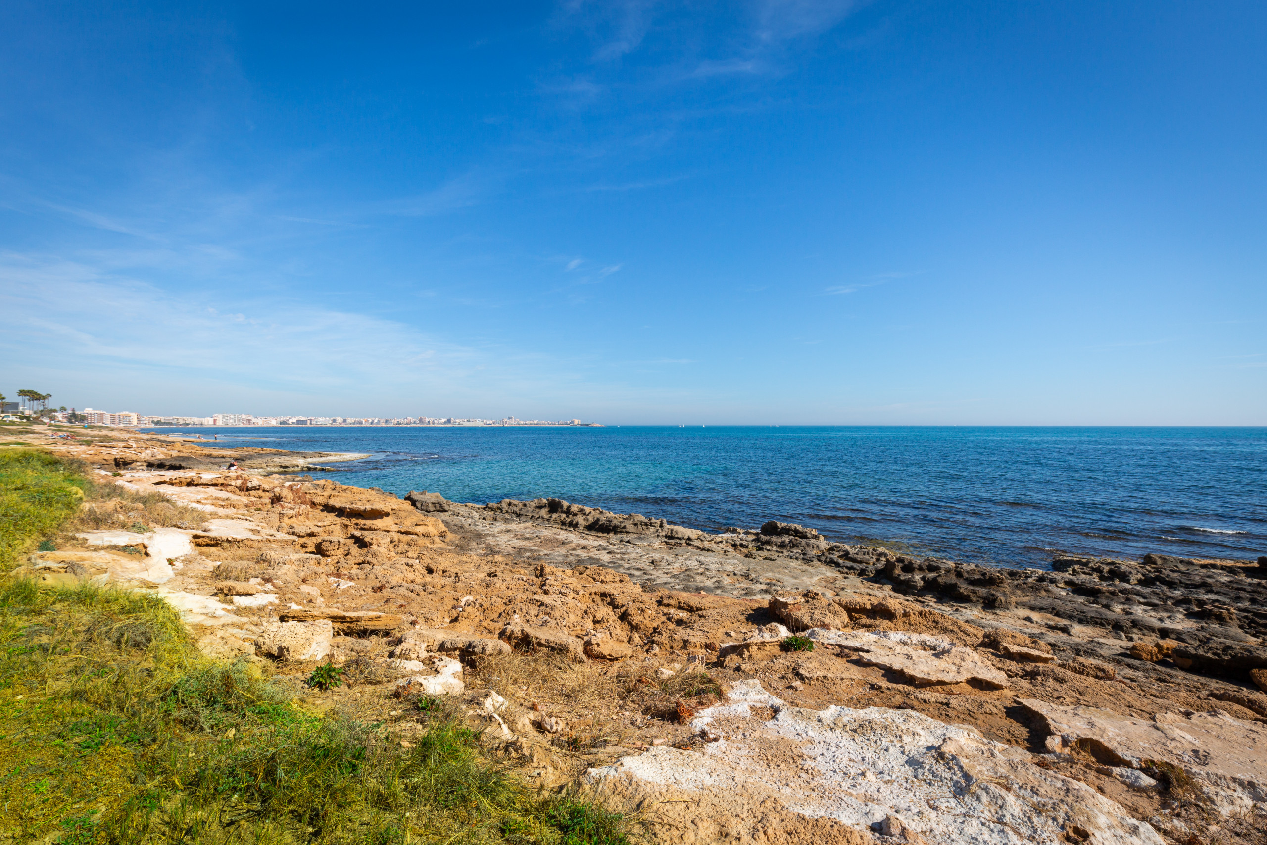 house located in a small cove, cala ferri, a step away from anywhere, torrevieja center, the balconies, services and the view is impressive.