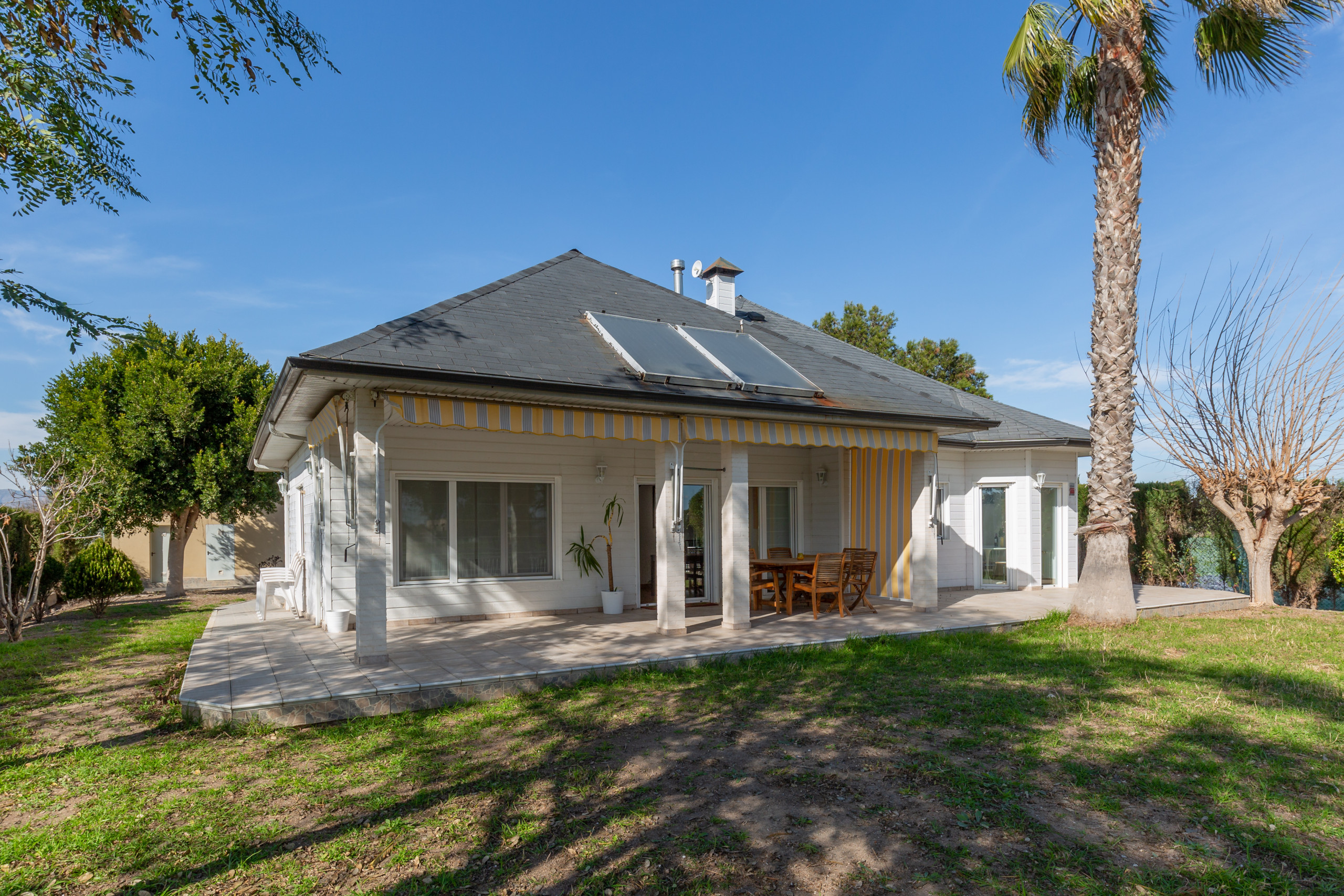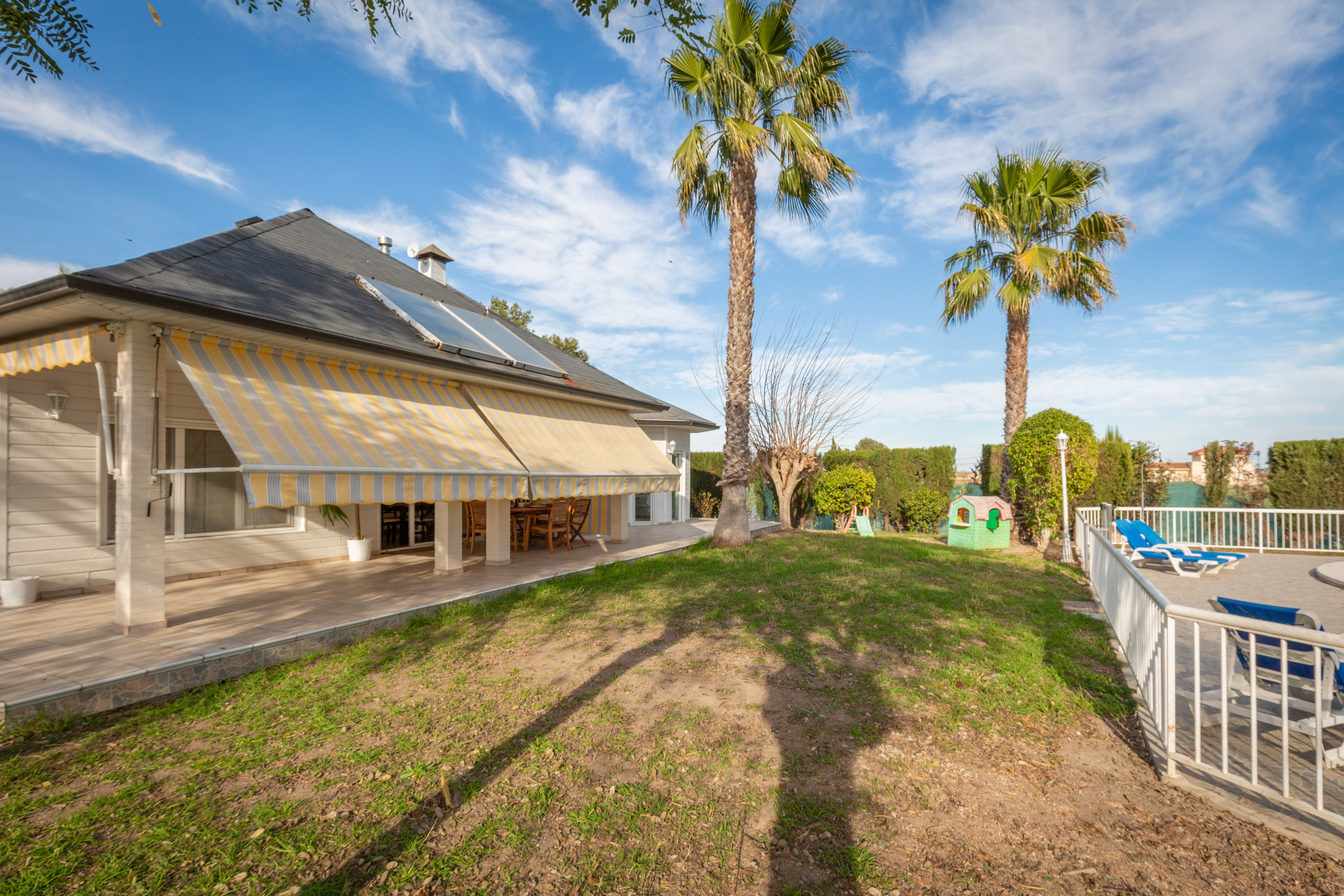 It has a garden, garden furniture, a fenced plot of 3700 m2, 50 m² of terrace, iron, internet access (wifi), hairdryer, balcony, children's area, heat pump heating, air conditioning, private pool, covered parking in the same building, 2 Televisions, satellite tv (Languages: Spanish, English, German, Dutch, French, Russian, Swedish, Norwegian), radio.