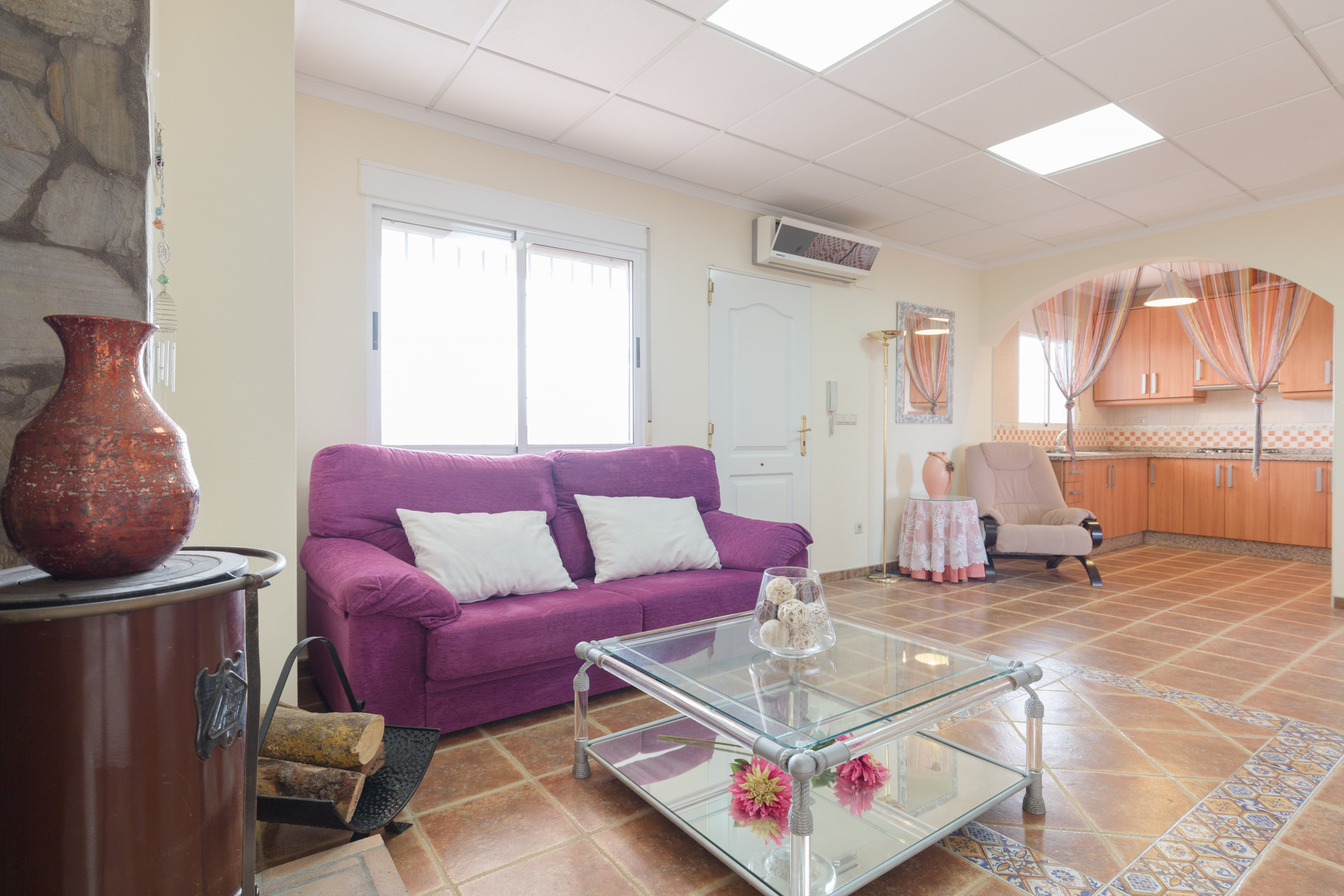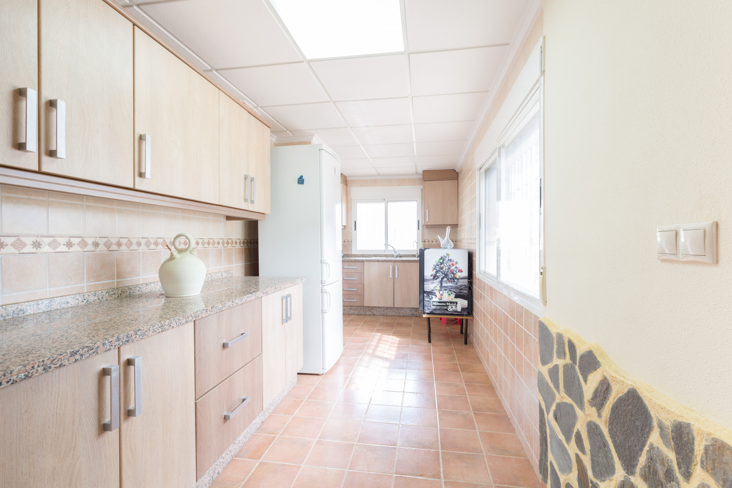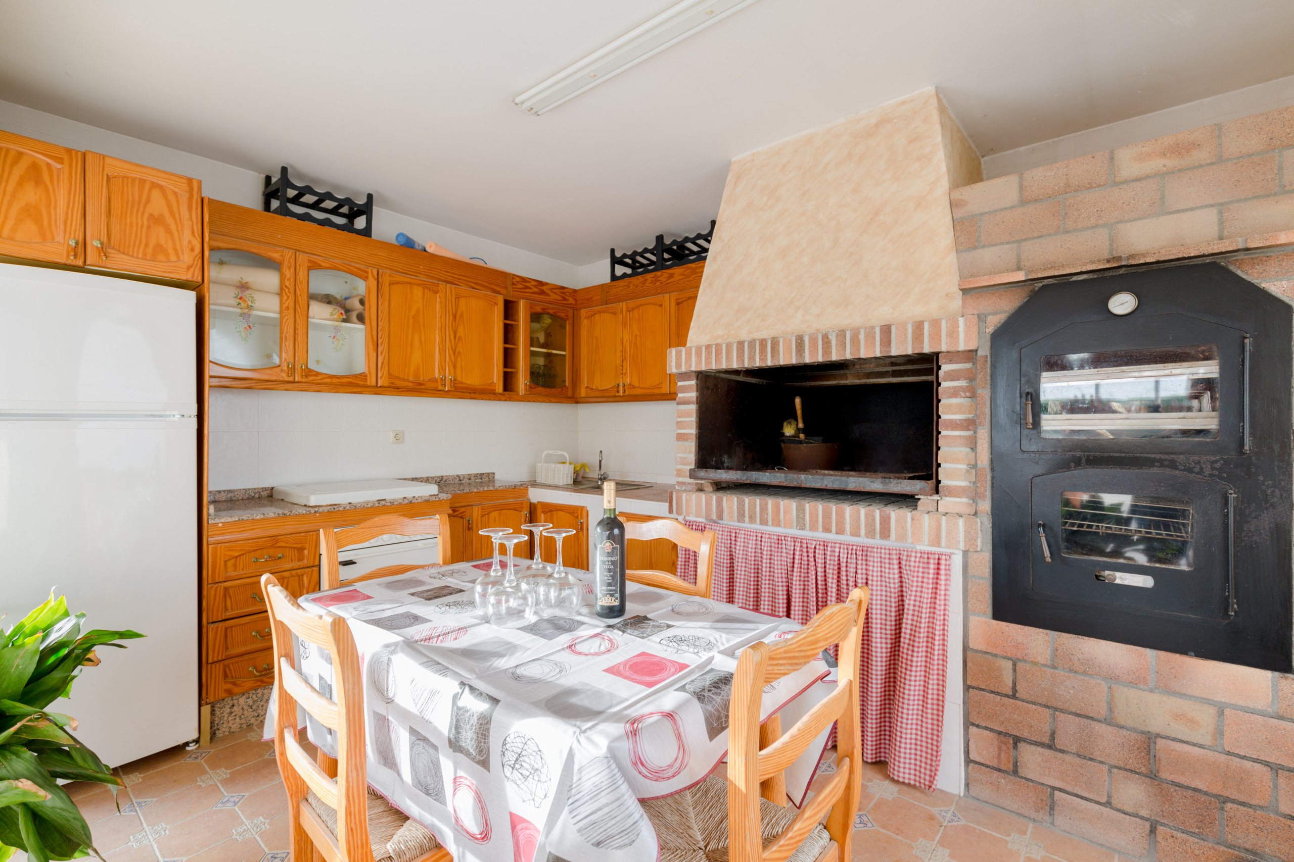 In the vitroceramic open plan kitchen, refrigerator, microwave, oven, freezer, washing machine, dishwasher, dishes/cutlery, kitchen utensils, coffee machine, toaster, kettle and juicer are provided.