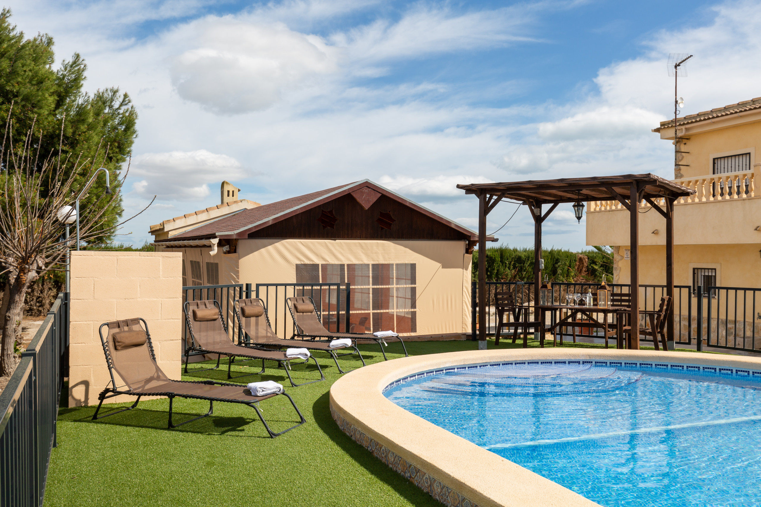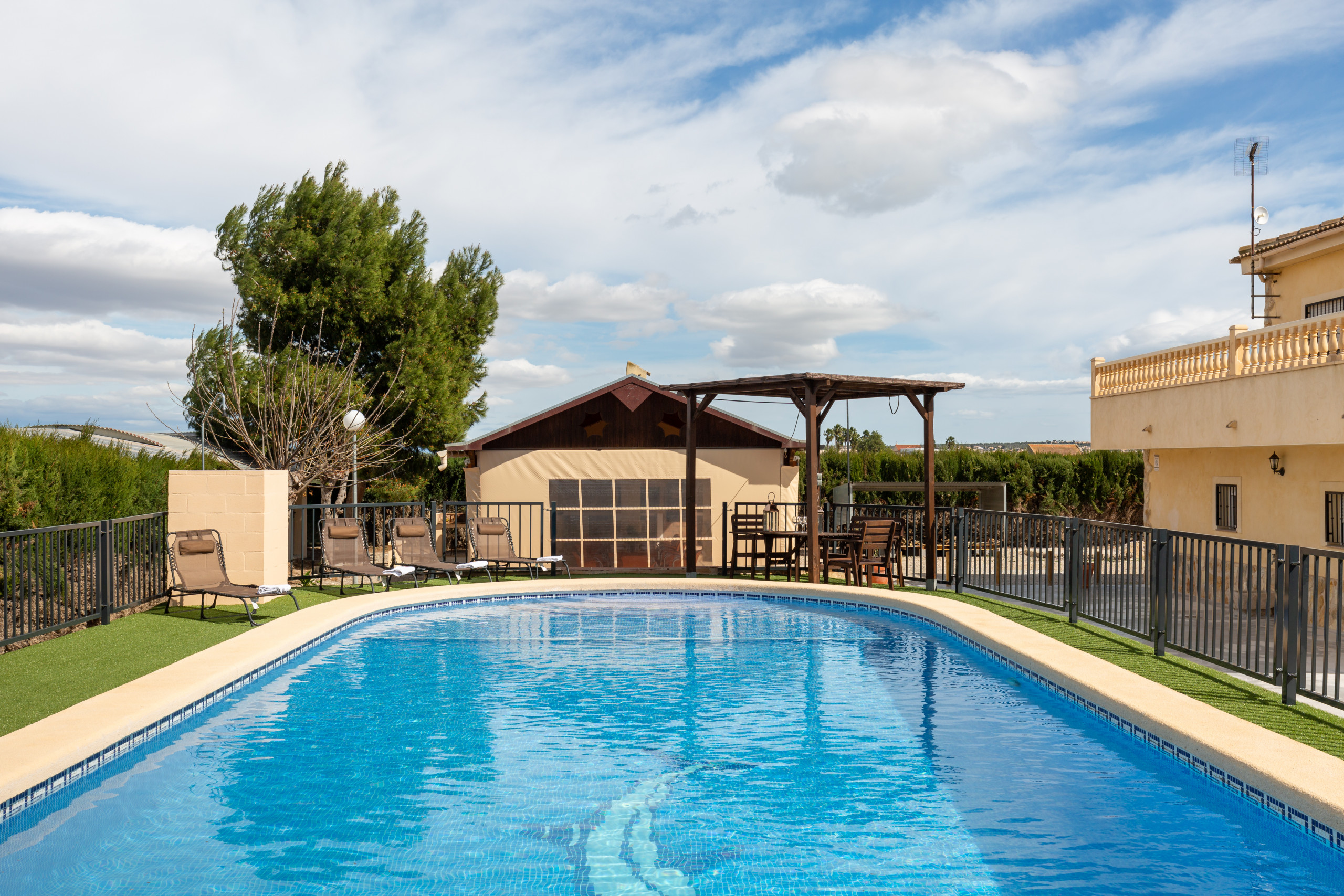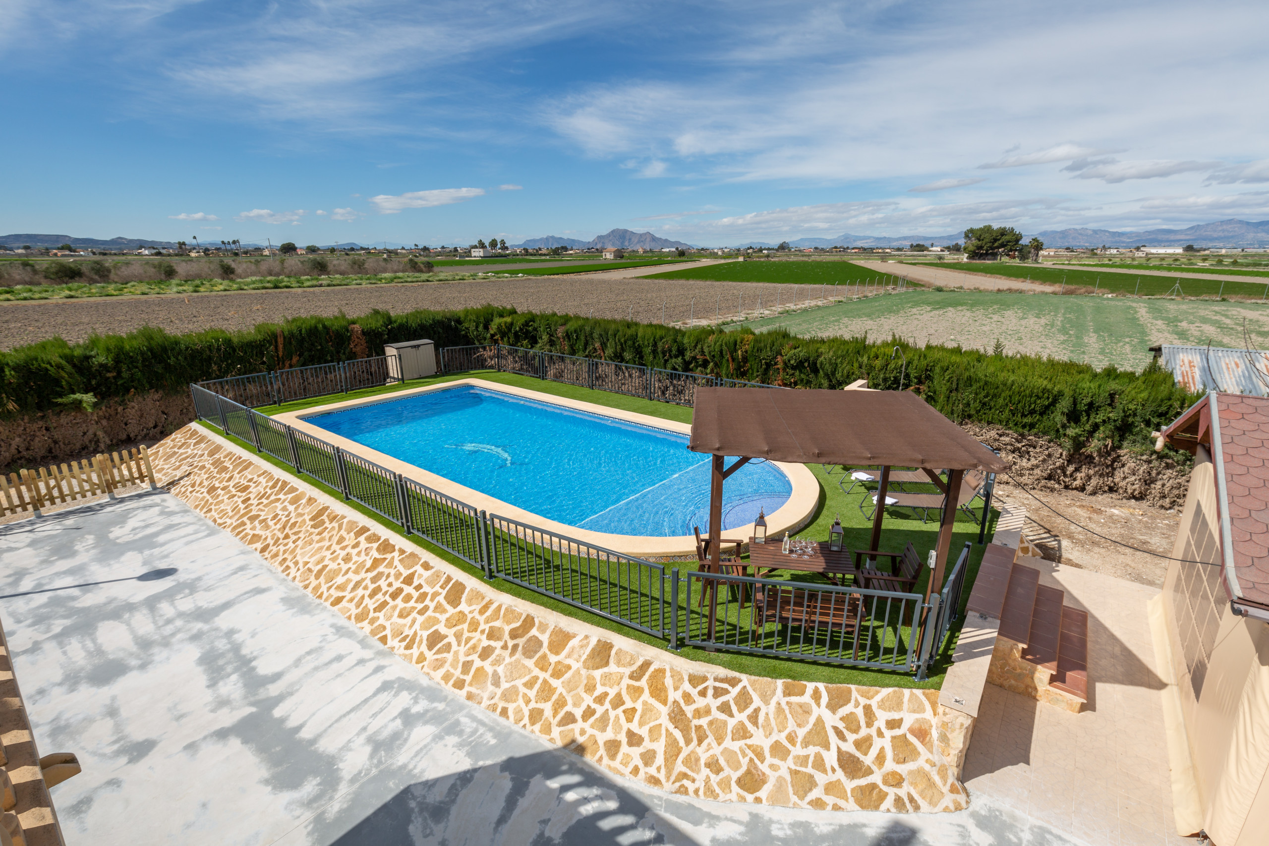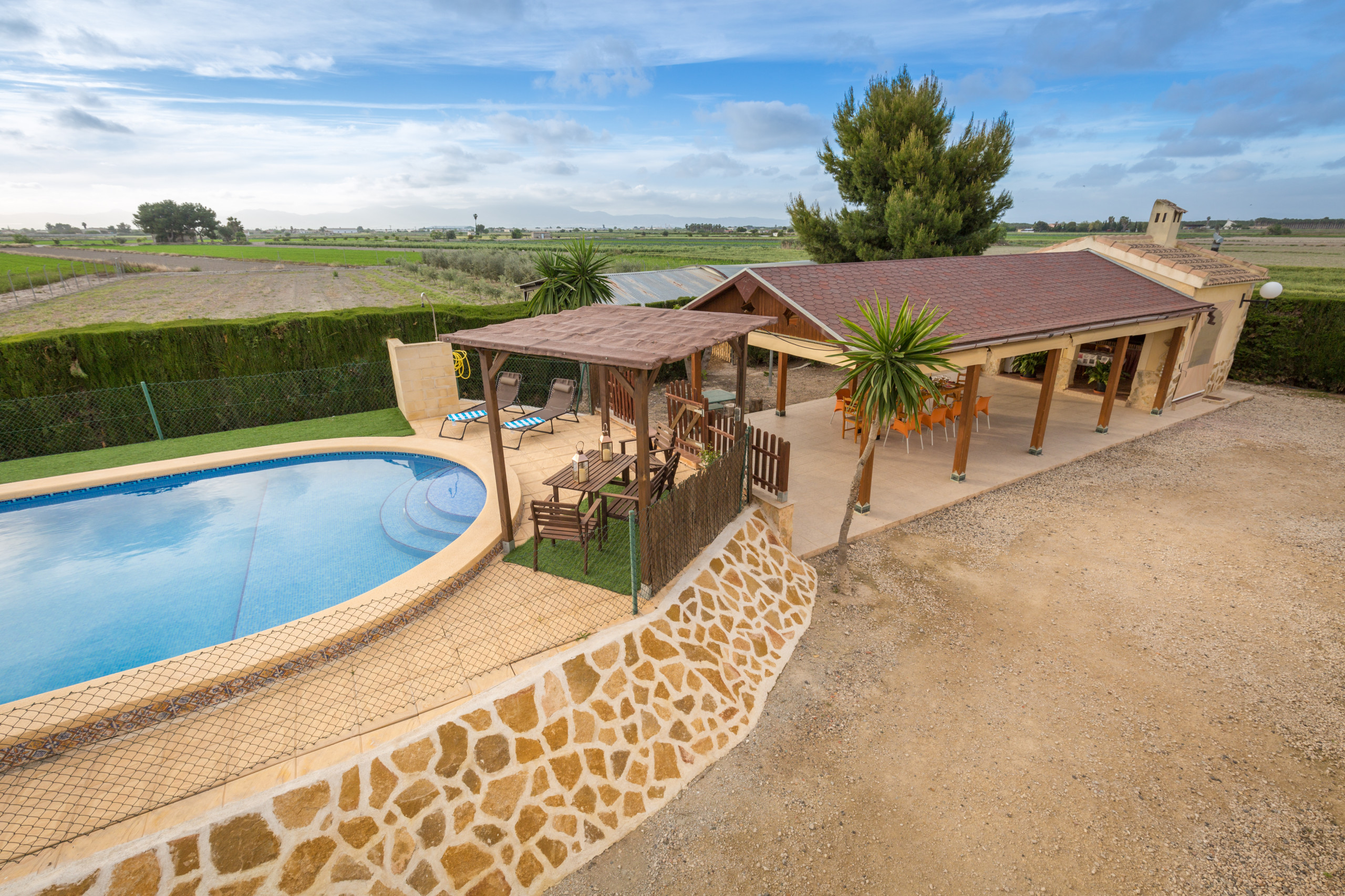 casa con piscina privada, barbacoa y muy amplia ideal para familias, y cerca de guardamar del segura a 10 minutos en coche, así que tienes todo cerca y estas en el campo con mucha tranquilidad